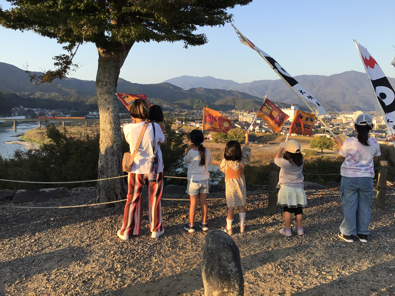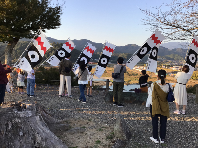 11月になりました。毎年11月3日は大洲の秋祭りを行っていますが、今年は新型コロナウイルスの影響で休止していたお祭りが久々に再開され、町全体が賑わいました。八幡浜編では、大洲市内の親子、松前町からのご家族、大阪府、愛知県からの男性の方々などが参加され、12名での旗振りになりました。大阪府からの男性は伊予灘ものがたりから旗振りを見たので、お城に来られたとのことでしたが、旗振りがスタッフの方だけでやっていると思っていたので、一般の人がされているのでびっくりしましたと話されていました。道後編では、大洲市内のご家族が多数参加され、19名での旗振りになりました。子供たちが多くにぎやかな旗振りになりました。旗振りへのご参加、ありがとうございました。