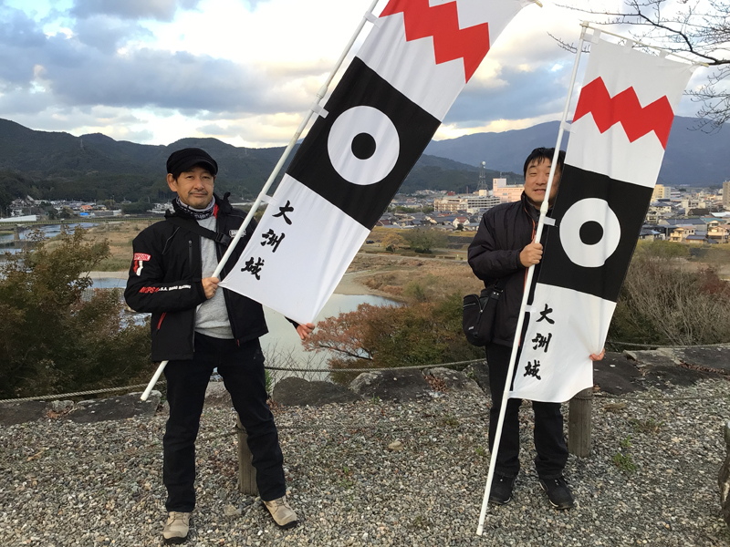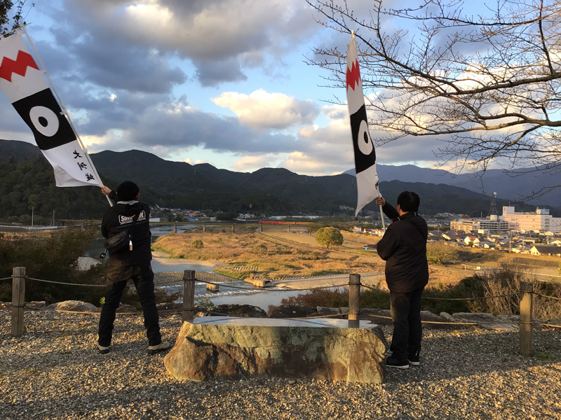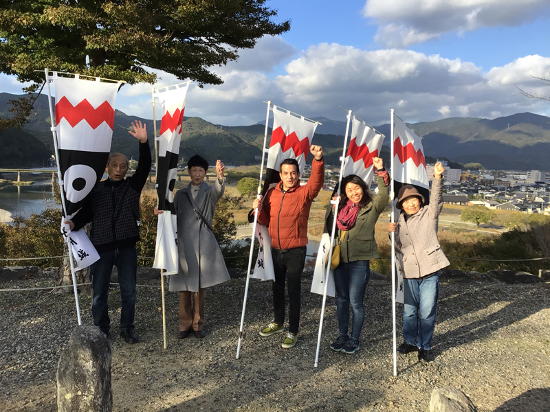11月も半ばを過ぎて、寒さも本格的になってきました。旗振りで外に出ると晴れてても風が冷たく感じます。八幡浜編では地元大洲市の方とニューヨークからの男性などの方々に参加していただき、10名での旗振りになりました。大洲市の方とニューヨークからの男性は一緒にお城へ来られたところでした。道後編では岡山県からの男性お二人に参加していただき、4名での旗振りになりました。バイクで大洲城へ来られたそうで、旗振りの後は岡山まで帰られたそうです。旗振りへのご参加、ありがとうございました。