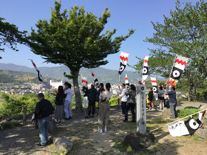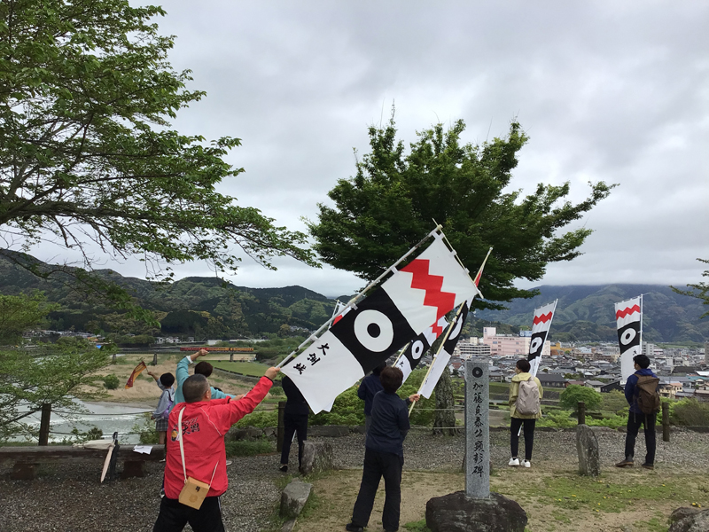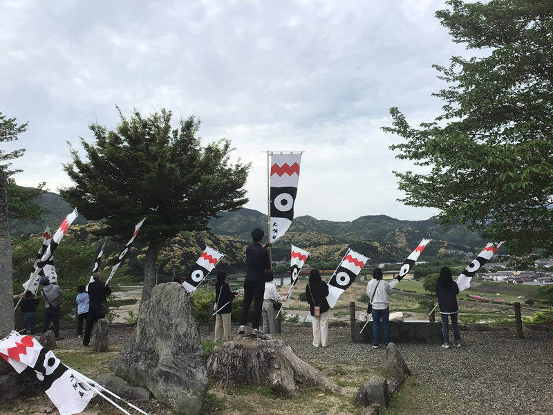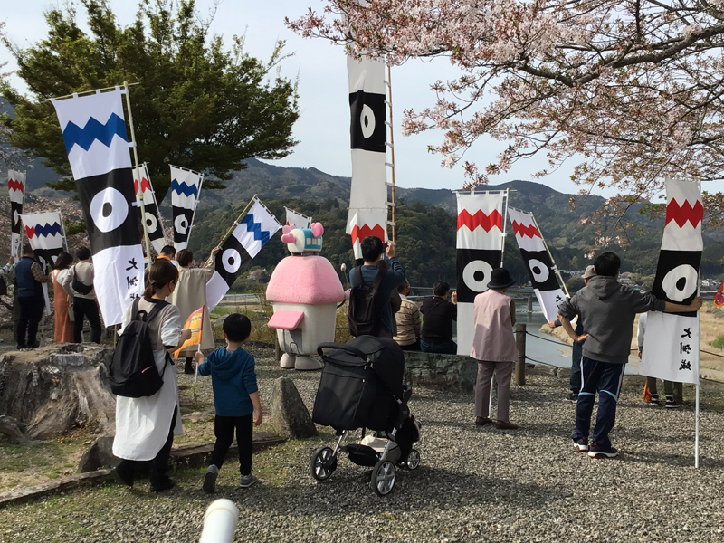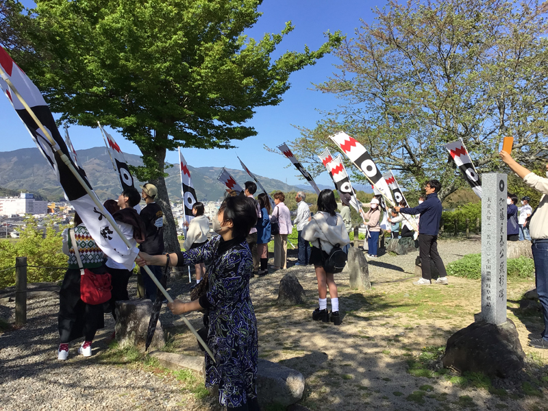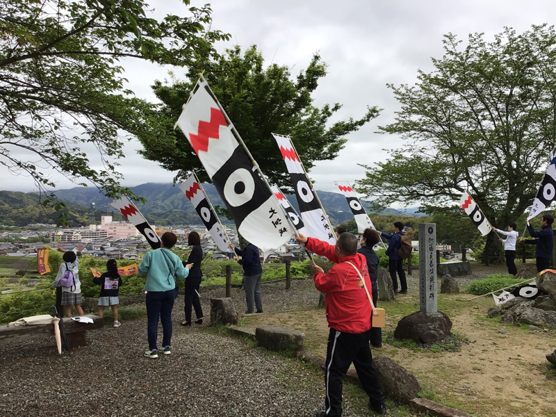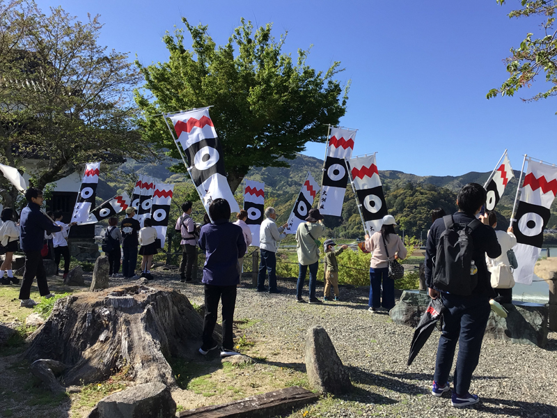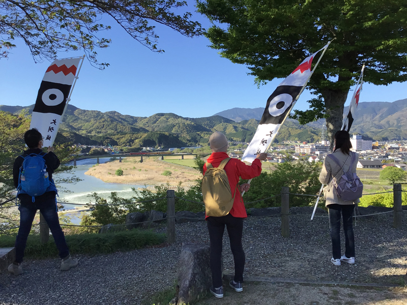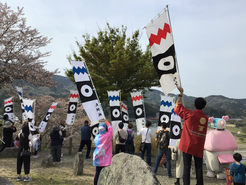 4月は桜が見ごろを迎え、満開のなかでの旗振りから始まり、4月2日(日)は伊予灘ものがたり2代目車両が運行1周年を迎え、大洲城では歓迎旗振り以外にものぼり旗を立ててお祝いしました。桜が終わってからも多くの方々に旗振りにご参加いただきました。旗振りへご参加された皆様、大変ありがとうございました。