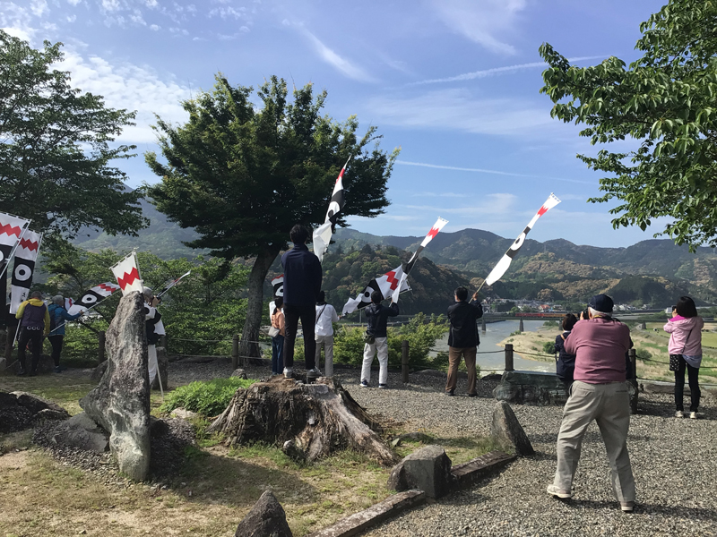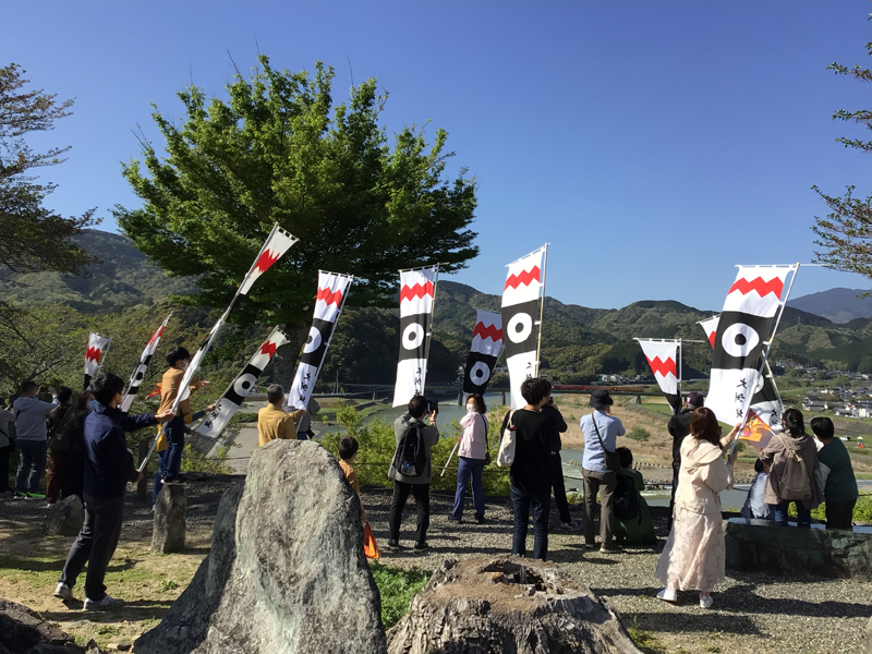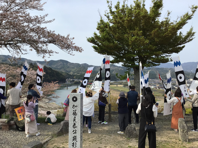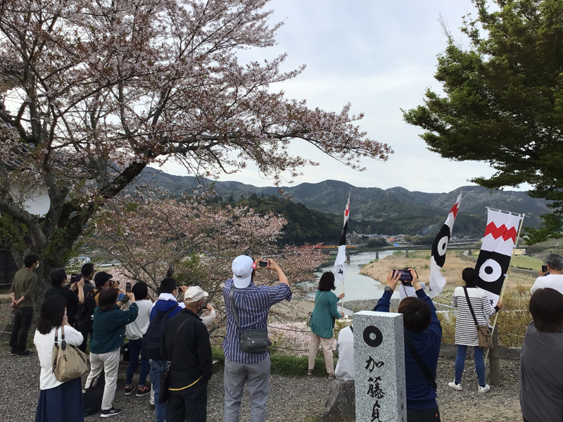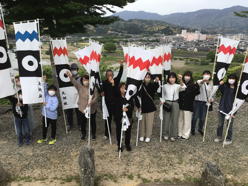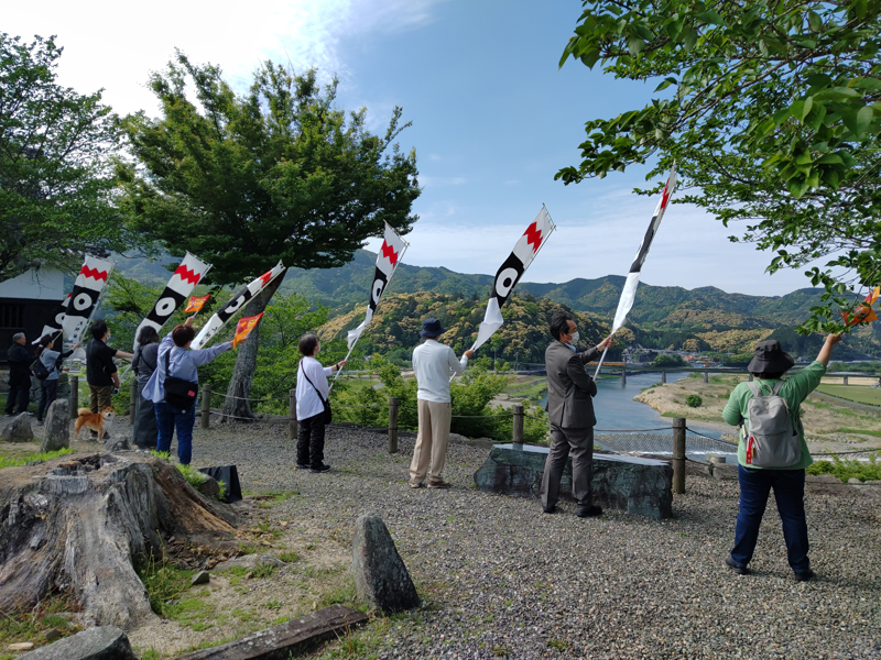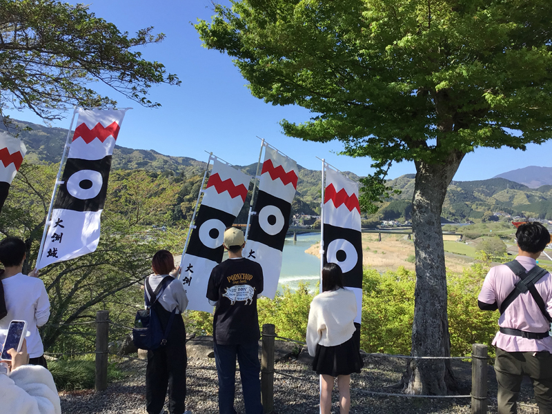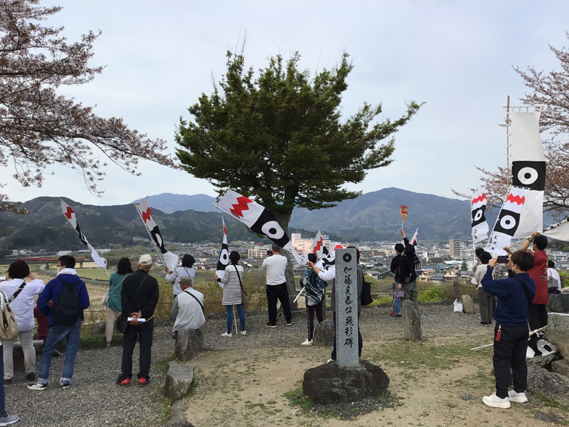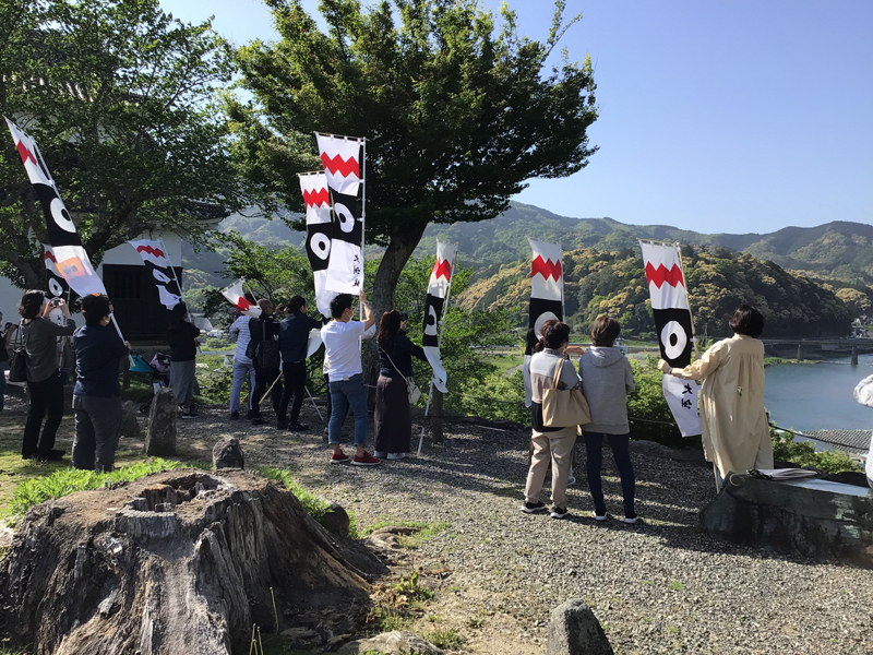 4月は桜が見ごろを迎え、満開のなかでの旗振りから始まり、4月2日(日)は伊予灘ものがたり2代目車両が運行1周年を迎え、大洲城では歓迎旗振り以外にものぼり旗を立ててお祝いしました。桜が終わってからも多くの方々に旗振りにご参加いただきました。旗振りへご参加された皆様、大変ありがとうございました。