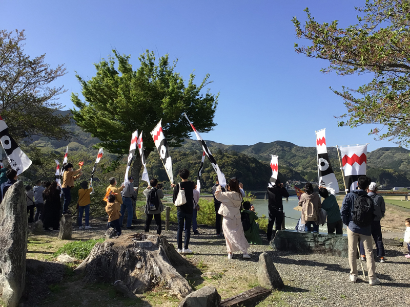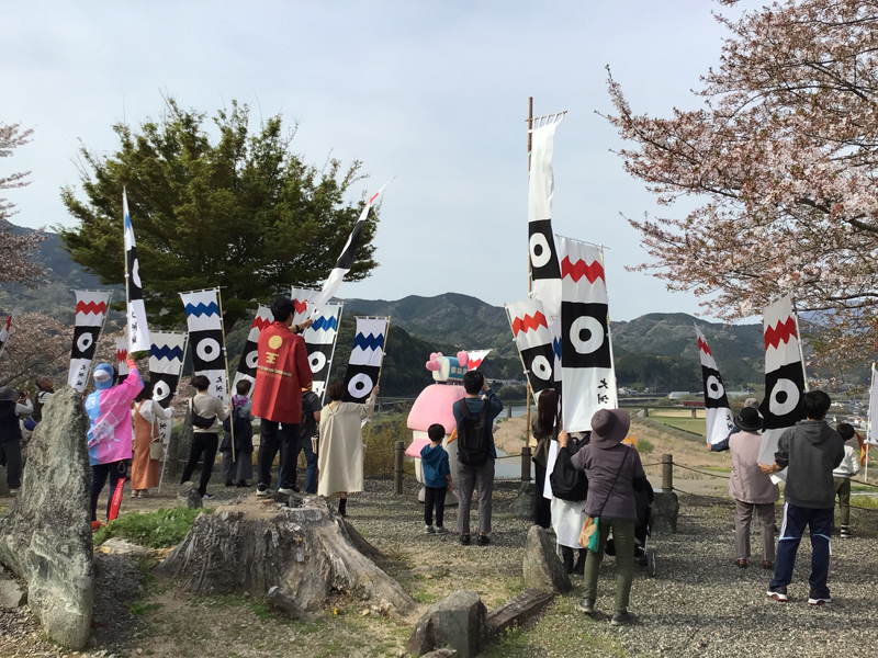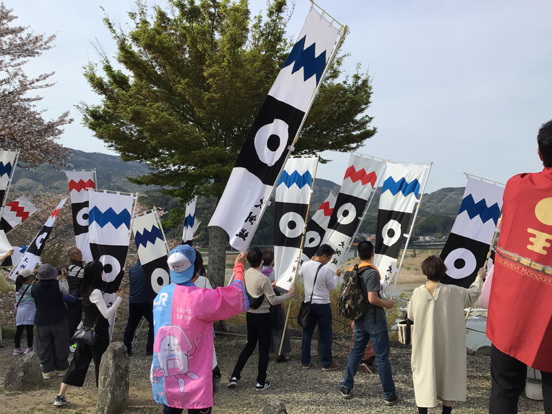 伊予灘ものがたり歓迎旗振り4月の写真です。