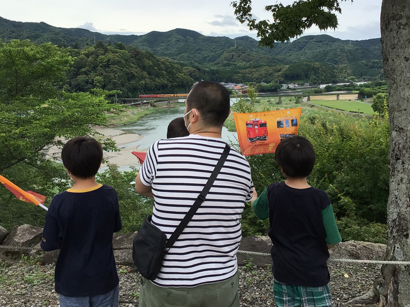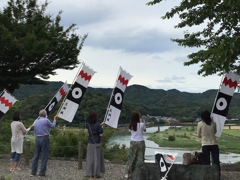 この日も曇り空でしたが、雨に当たらず旗を振ることができました。八幡浜編では地元大洲市の男性と松山市からの女性3名、今治市からのご家族、香川県からの女性4名が参加され、14名での旗振りとなりました。松山市からの女性3名は午前中に伊予灘ものがたりに乗車されたとのことでした。次は午後の便に乗って、旗振りを伊予灘ものがたりから見てみたいと話されていました。道後編は職員2人で旗振りを行いました。旗振りへのご参加、ありがとうございました。