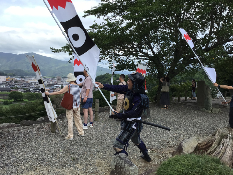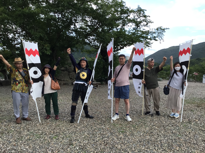 3連休最初の日です。雨が一時降っていたものの、旗振りの時には雨は上がり、無事伊予灘ものがたりを歓迎することができました。八幡浜編では高知県と福岡県からのご夫婦に参加していただき、5名での旗振りでした。福岡県からのご夫婦の旦那様は旗振りの後、大洲城で甲冑を着ることができる「武将なりきり体験」を利用していただき、甲冑を着て写真撮影を楽しまれました。また、道後編では甲冑を着て歓迎旗振りに参加され、大洲城での体験を堪能していただきました。道後編ではほかにもご夫婦の方々などに参加していただき、11名での旗振りになりました。旗振りへのご参加、ありがとうございました。