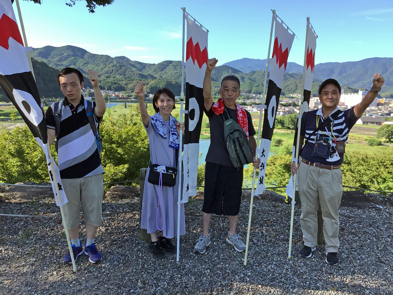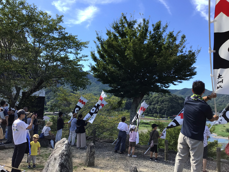 連休2日目は天気が良くて暑くなりましたが、ご家族で来城される方がとても多かったです。八幡浜編ではそんなご家族の方々が多数参加され、17名での旗振りとなりました。また、マレーシアから来られた方も列車が通過するのを見送られました。道後編では、大阪府からの男性と、奈良県からのご夫婦、中国は上海からの男性が参加され6名での旗振りになりました。大洲城も最近になって、海外からのお客様が増えており、今日は旗振りにも海外からの方が参加されました。旗振りへのご参加、ありがとうございました。