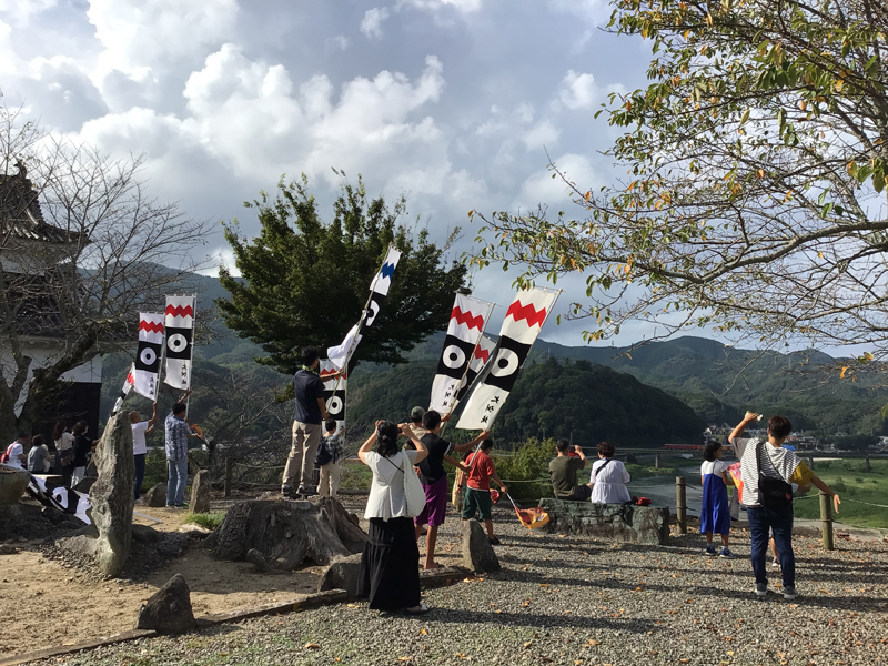 今日は3連休の最終日です。八幡浜編では地元大洲の方がご友人の方々を連れて参加されたほか、今治市からのご家族、いつも旗振りに来てくれるお母さんと女の子2名が参加され、14名での旗振りになりました。大洲の方のご友人は大阪や東京、北海道から来られたそうです。旗振りの途中から雨が降り始めましたが、列車が通り過ぎるまで旗を振っていただきました。道後編では鳥取の米子から来られた男性が参加され、3名での旗振りになりました。大洲のお殿様が以前は米子にいたことを初めて知り、ゆかりあるところに来られてよかったとのことでした。旗振りへのご参加、ありがとうございました。